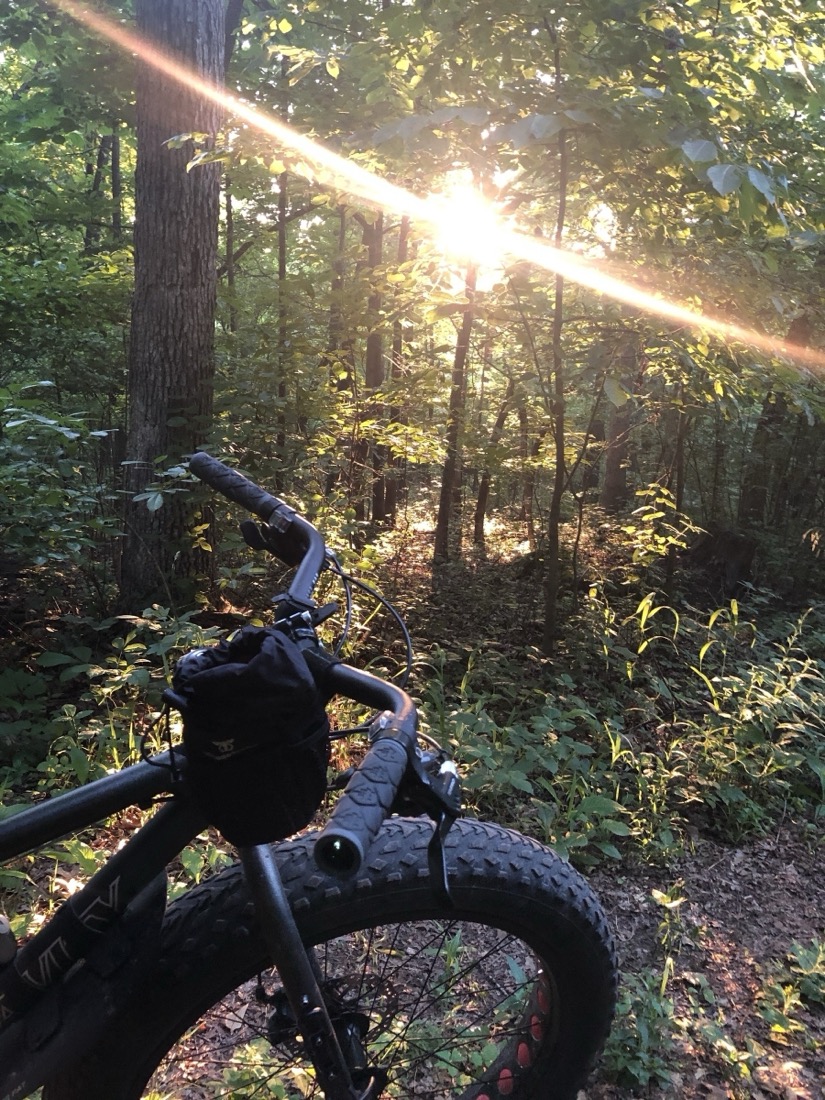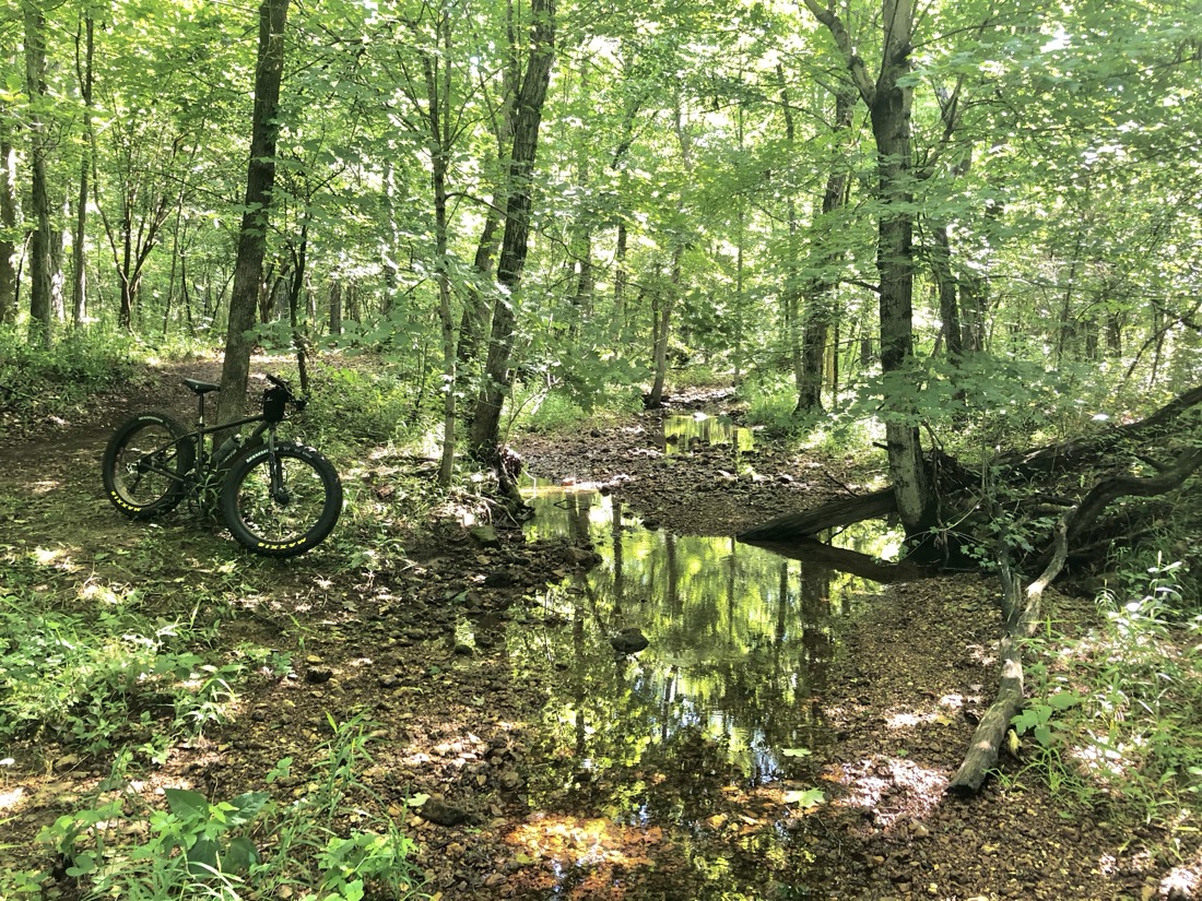 All that said I’ve bumped up against a barrier with this bike which is my desire to get back to doing some longer road and gravel riding. I can certainly ride the fatbike on the road and have been. 413 miles of mostly road riding in the first 12 days of July alone. Compared to the 80lbs of the Rad Rover the 38 lb Gravity seems like a nimble featherweight. But those 38lbs and fat tires, while fine on the trail, make for a fairly slow road ride. I’m not racing anyone and am generally okay with a slower ride with one exception: dogs. My ride to town and my longer ride out to the gravel roads of Perry county both take me up hills that also have dogs that chase. I’m not willing to ride uphill on a heavier bike when I’ve got a dog that I don’t trust living at the bottom or anywhere along that hill. I have no problem peddling the Gravity up a steep hill but I do slow down on such hills. An aggressive dog chasing me in that situation would not be good.