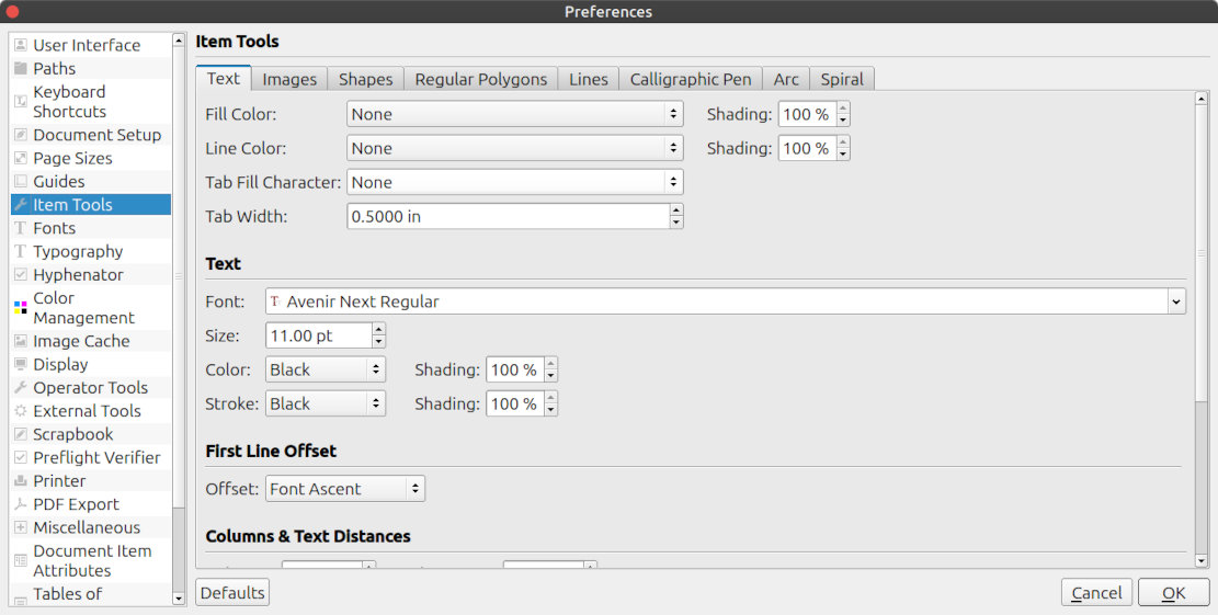 Also, worth noting, another significant difference are the Document set-up options. All the basic and expected options are there: Document size, margins, bleed, etc. But there's far more that can be set-up for each document! Set-up for each document essentially offers the same settings screen that one gets with the app itself and it's far more detailed than what is offered in Affinity Publisher. So, for example, I can set the default font and various font attributes in the app settings. If I don't bother with the that option in the document set-up the document will inherit the setting. Same for various other palettes/options. In other words, it helps to pay close attention. I can set various shape and image options in advance in the app and in each document. It's absolutely something to pay attention to when getting started.